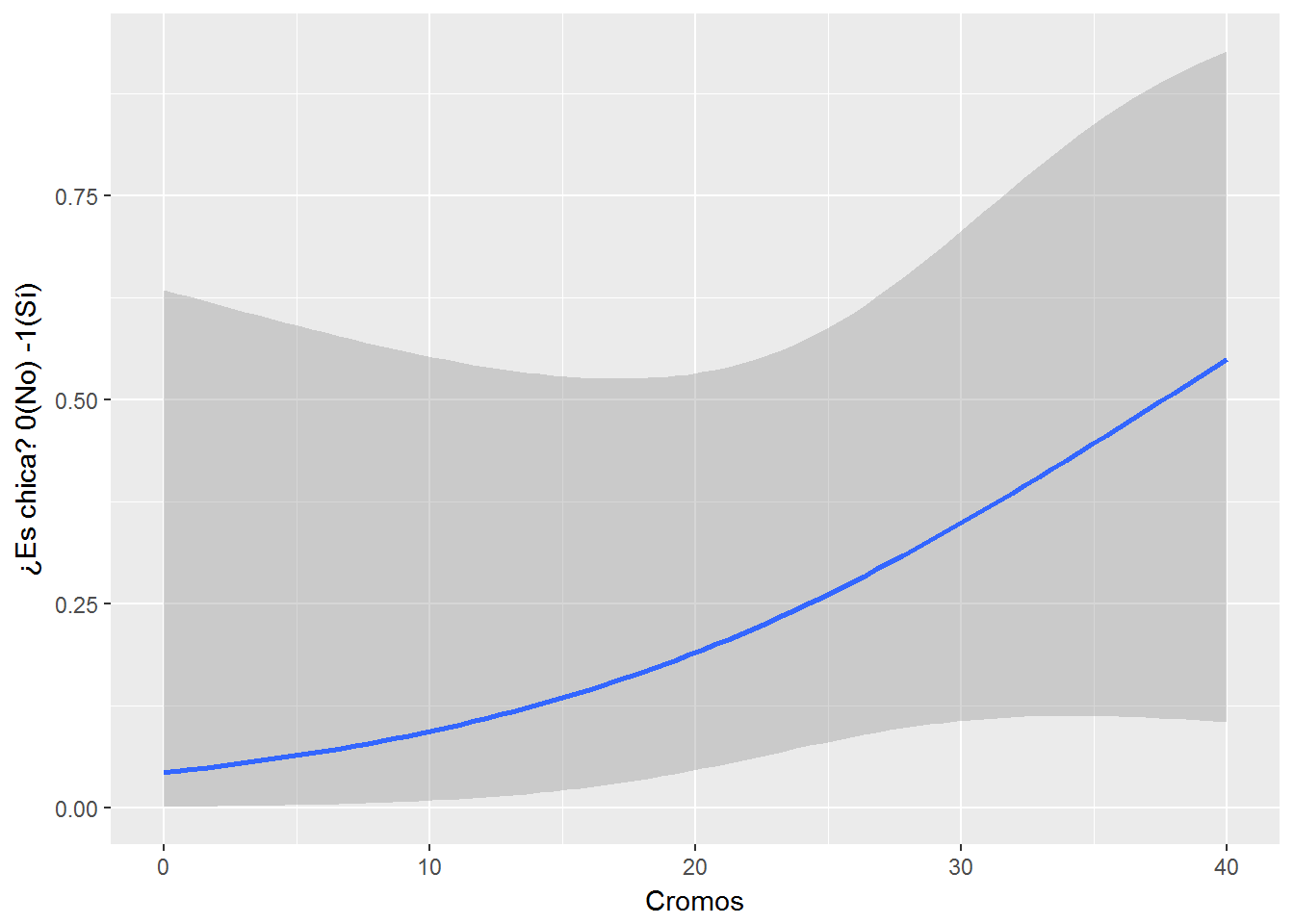 Probemos con un ejemplo tonto en base a nuestros datos: probabilidad de ser chica en función del número de cromos que tiene una persona.